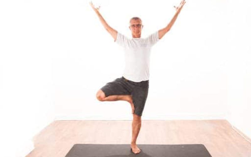 چگونه انجام دهیم؟: پای چپ خود را پایین بیاورید و آن را محکم روی زمین قرار دهید. پای راست خود را بلند کنید و آن را کنار مچ چپ بگذارید. هرچه پای راستتان را بالا بیاورید چالش این حرکت برای شما بیشتر خواهد بود. تعادل را در این حرکت پیدا کنید و سپس هر دو دست را جلوی قفسه سینه قرار دهید و کف دستانتان را به هم نزدیک کنید. شانه ها را به سمت پایین بکشید و در ستون فقرات کشش ایجاد کنید. اگر تعادل خوب و پایداری دارید، دستانتان را بالای سرتان ببرید و آن را به سمت آسمان بکشید. آگاهی را به نفس خود برگردانید، سه نفس دم و بازدم عمیق داشته باشید، در آخرین بازدم دست ها و پای راست را پایین بیاورید و به حالت خنثی و آزاد بایستید.