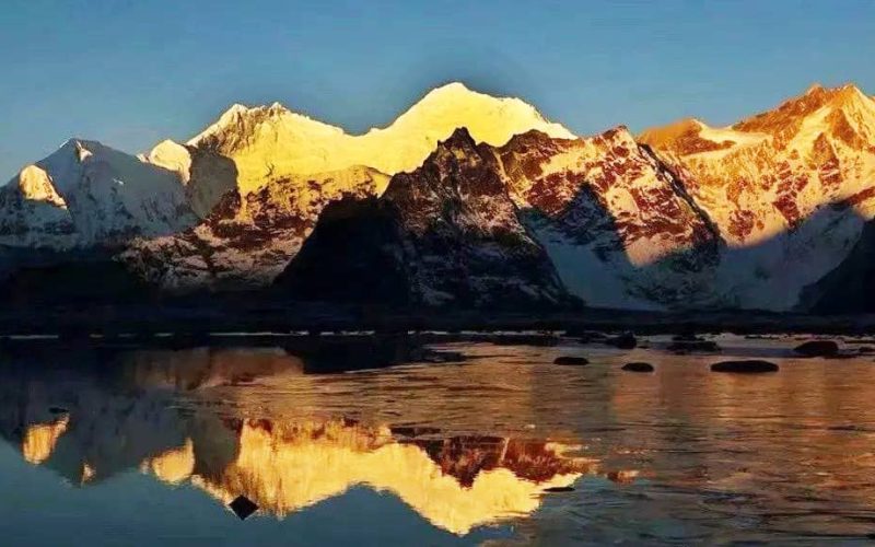 «کانگشونگ به خاطر طبیعت دستنخورده، دریاچههای فیروزهای و چشمانداز خیرهکنندهاش به قلههای ۶۲۹۵ متری کارما چانگری و یخچال عظیم کانگشونگ شهرت دارد.»