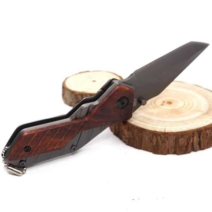 - جنس تیغه: فولاد ضدزنگ AUS-8 با پوشش مشکی مات