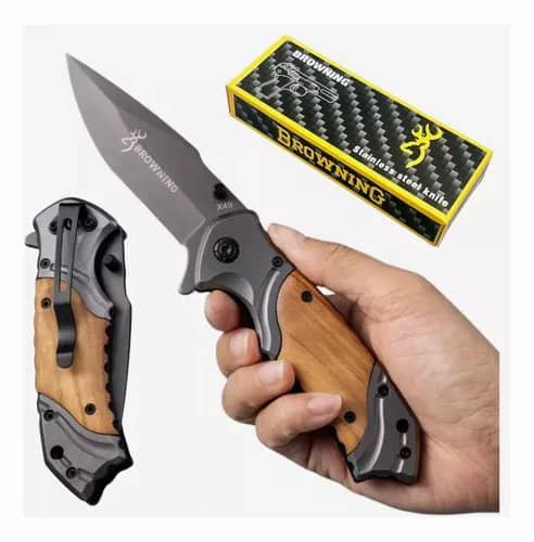 Browning X49 یه چاقوی تاشو خوشدست، مقاوم و کاربردیه که هم برای استفاده حرفهای تو طبیعت جواب میده هم برای کارهای روزمره. ترکیب دسته چوبی با بدنه فلزی باعث شده هم خوشگل باشه هم کارا.