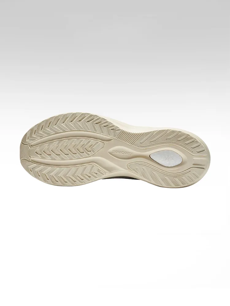 زیرهی بیرونی از لاستیک مقاوم با شیارهای عمیق و جهتدار ساخته شده تا در شرایط مرطوب یا لغزنده، کنترل حرکت حفظ شود. طراحی قوس میانی (midfoot cradle) در این مدل باعث میشود انتقال نیرو از پاشنه به پنجه روانتر انجام گیرد و دوندگان حس «حرکت پیوسته» را تجربه کنند.