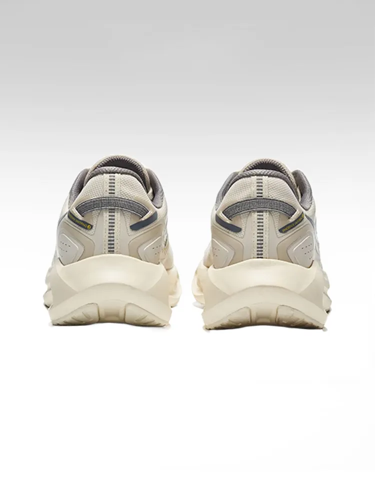 از نظر ظاهر، رنگ بژ طلایی با جزئیات طوسی و زیتونی جلوهای مدرن و مینیمال دارد که هم برای تمرین روزانه و هم استفادهی شهری جذاب است. آستر داخلی از پارچهی نرم و ضدتعریق ساخته شده و زبانهی نیمهمتصل مانع از ورود گردوغبار به داخل کفش میشود.
